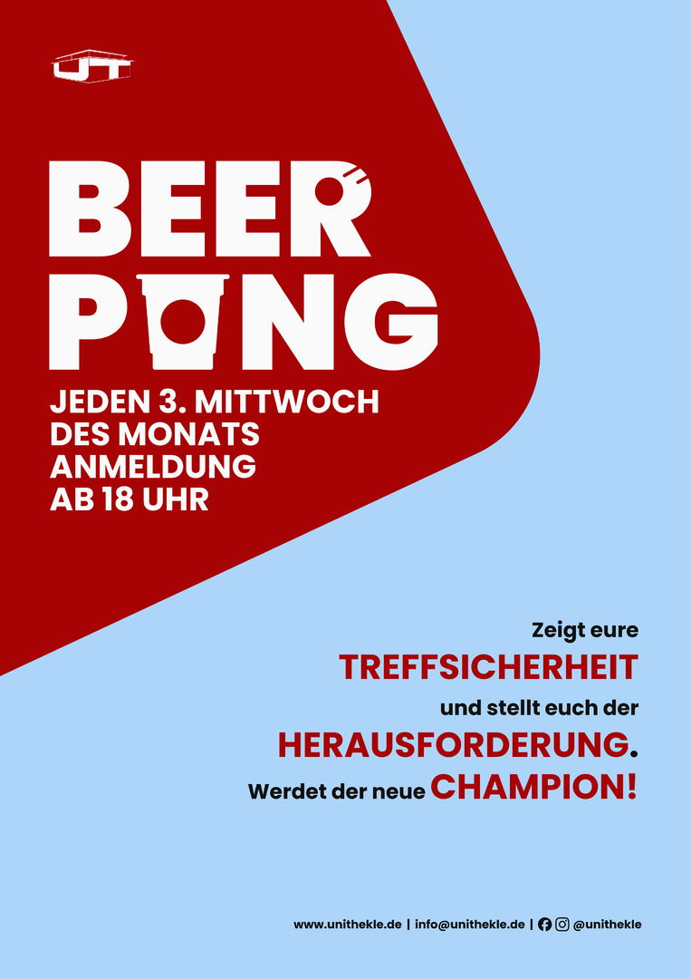 Schlag deine Konkurrenz, trink mit Freunden und mach dich bereit für die ultimative Beerpong-Nacht im Unithekle!