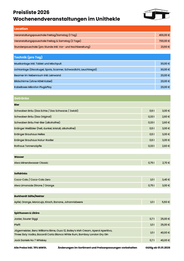 Du hast einen Grund zu feiern? Selbst wenn nicht... das Unithekle kann freitags und samstags für